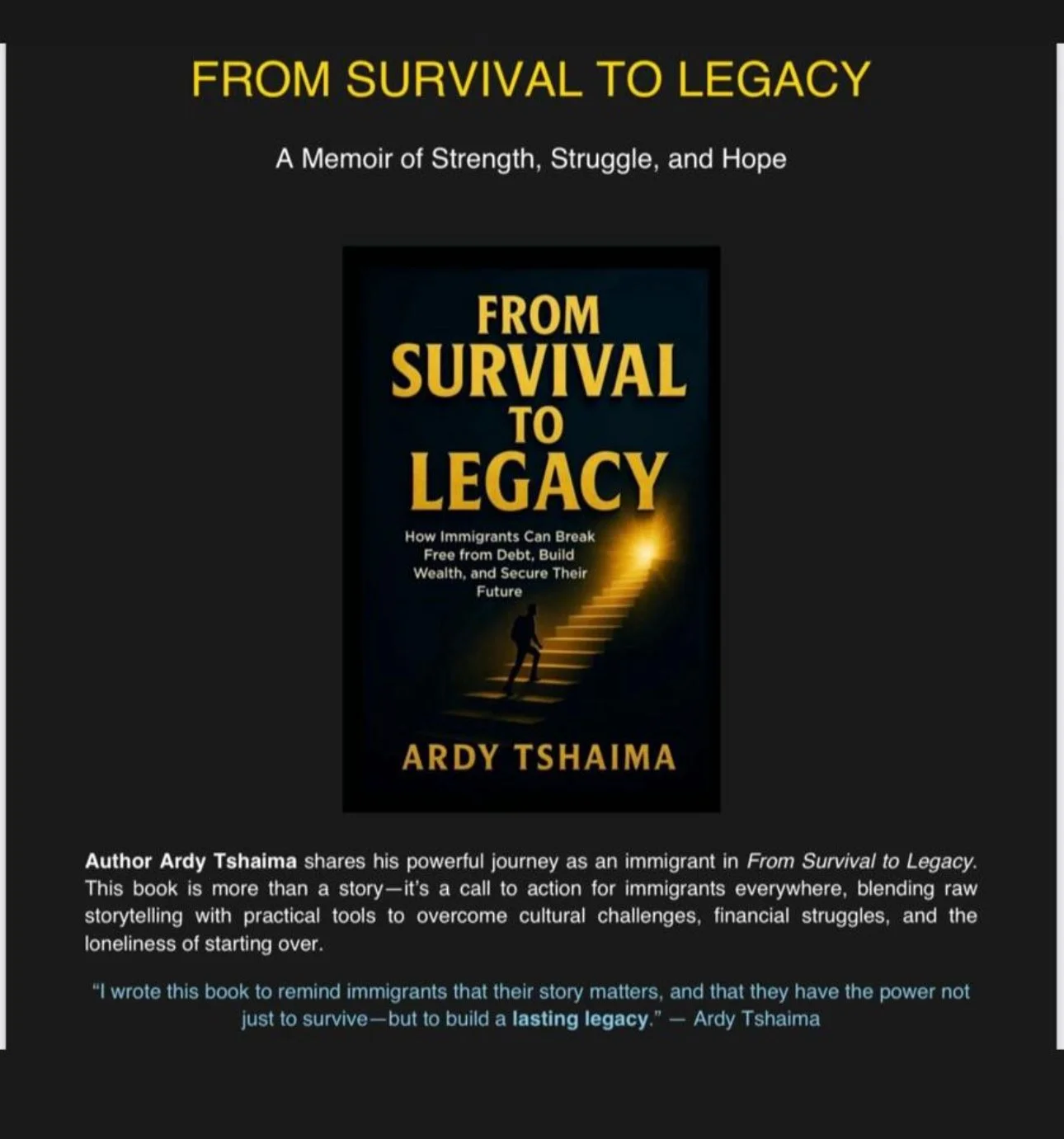 The new book of Ardy Tshaima: From survival to legacy.